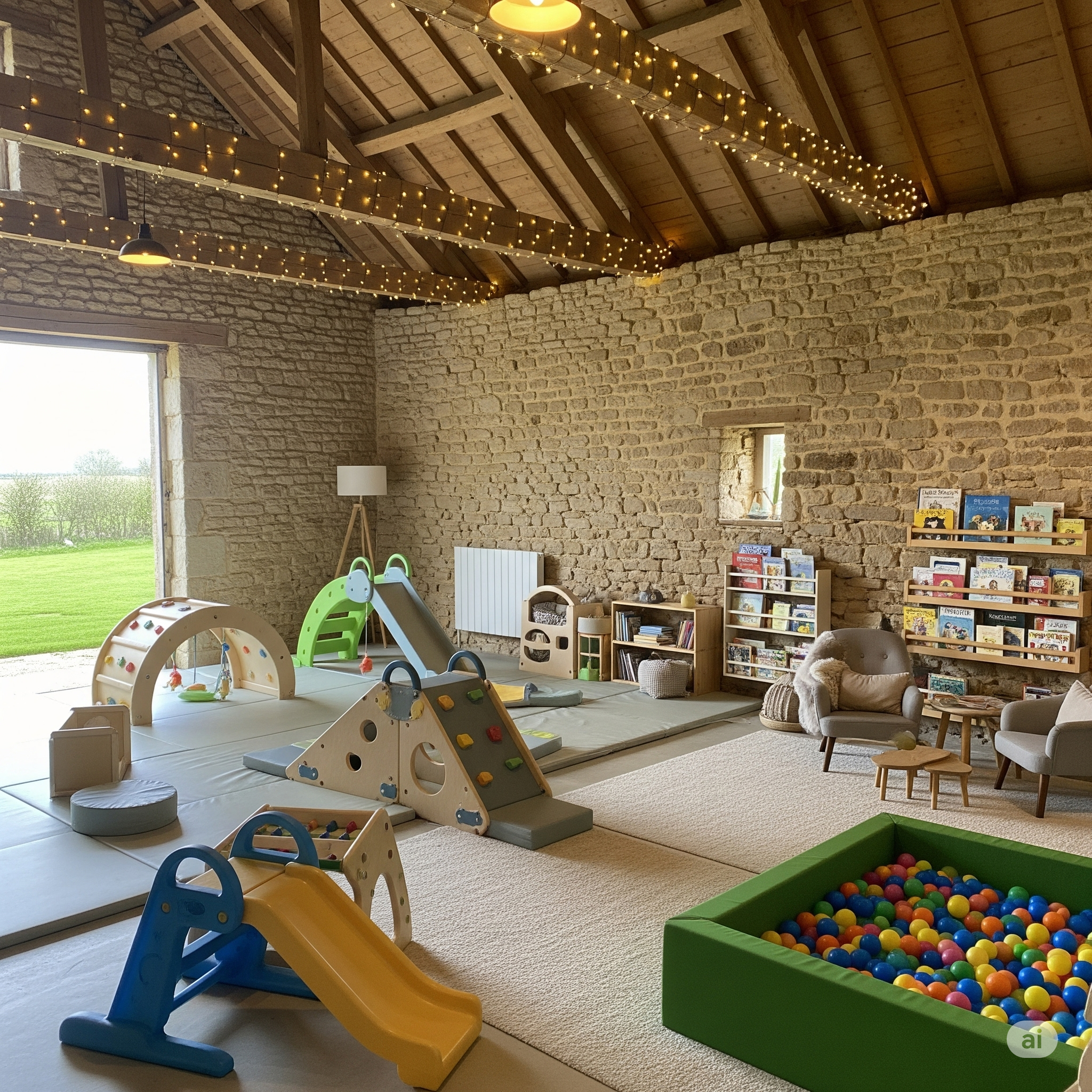 Schlechtes Wetter? Kein Problem! In unserer 300 m² großen Spielscheune warten unzählige Spielsachen darauf, entdeckt zu werden. Oder wie wäre es mit einer Vorlesestunde in der Kinderbibliothek, dazu leckeren Kuchen?