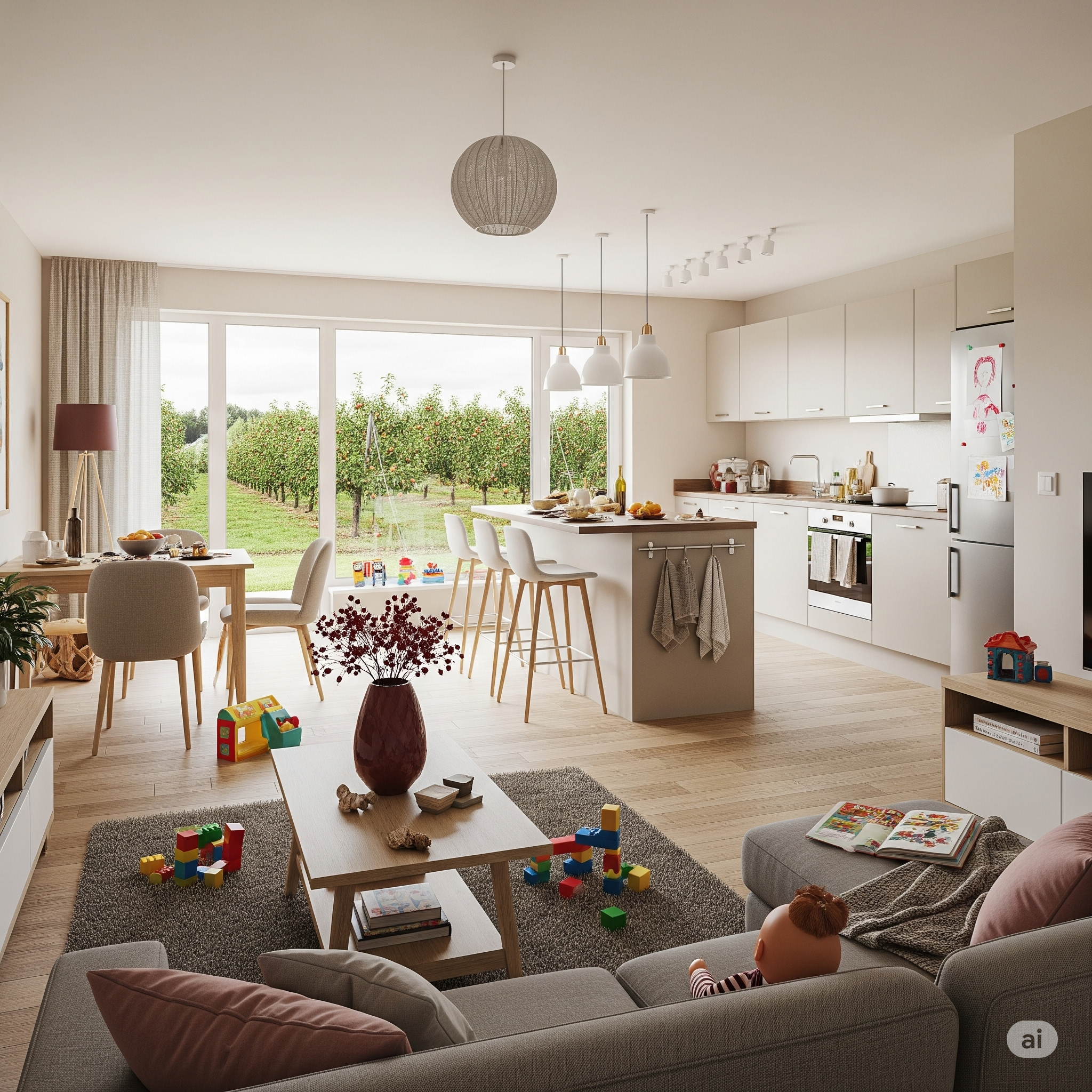 7.000 m², 80 Obstbäume, fünf Sandkästen und eine Bobbycar-Rennbahn.